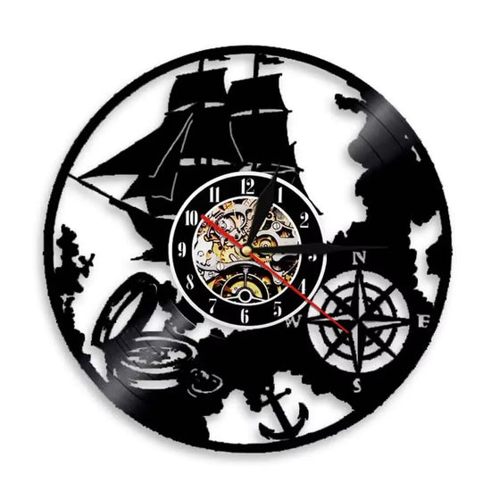 Horloge Murale "Conquérant" – Gouvernail en Vinyle & Design Laser Art