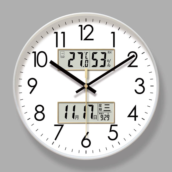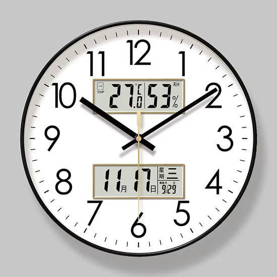 Alliez le charme d'une horloge traditionnelle à la technologie de pointe avec la Modern Atomic Wall Clock. Conçue pour ceux qui exigent une précision absolue, cette horloge murale intègre deux écrans LCD haute définition directement sur son cadran analogique, offrant une lecture instantanée de la température, du taux d'humidité et du calendrier complet. Son design épuré s'intègre parfaitement dans un bureau professionnel, une chambre à coucher ou un salon moderne.